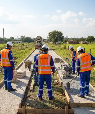 Construimos vías en placa huella duraderas y de bajo mantenimiento, ideales para mejorar la movilidad en zonas rurales y urbanas.